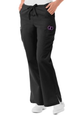 | Modern Waist Full drawstring with 2 side pockets and 2 cargo pockets Flare leg splits at sides Landau Essentials Flare Leg Cargo Scrub PantsInseams Regular 30 Petite 29 12 Tall 3365 Polyester 35 Cotton See why Landau is Made Better Better Quality Control Landau Care Instructions