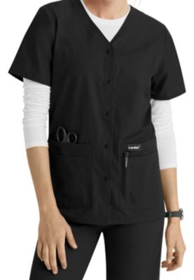 | Landau Essentials Snap Front Scrub Tops - Black - L |