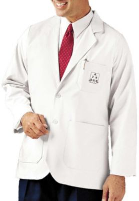 | Classic blazer style mens lab coat with chest pocket and lapel Features two button closure front pockets two lower inside pockets and a two piece straight back Center back length for size 40 is 31 14 65 Polyester35 combed cotton See why Landau is Made Better Better Fabric Landau Care Instructions