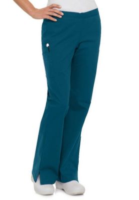 | The Landau Smart Stretch 5 pocket flare cargo pants have remarkable softness and durability These sporty scrub pants look great and have plenty of pockets for storageLandau Smart Stretch 5 Pocket Flare Cargo Scrub PantsFlare legInside drawstring frontElastic waist backTwo angled hip pocketsTwo patch cargo pockets with an instrument pocket on the rightInseam Reg 31 Petitte 28 12 Tall 3452 rayon45 polyester3 spandex