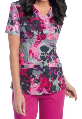 | Landau Smart Stretch Tuscany V-neck Print Scrub Tops - Tuscany Floral - 4X |